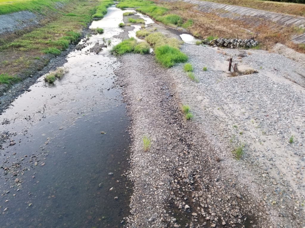 写真は近所の川ですが、普段は砂利部分がほぼ水に浸かっているのですがほとんど干上がっています。