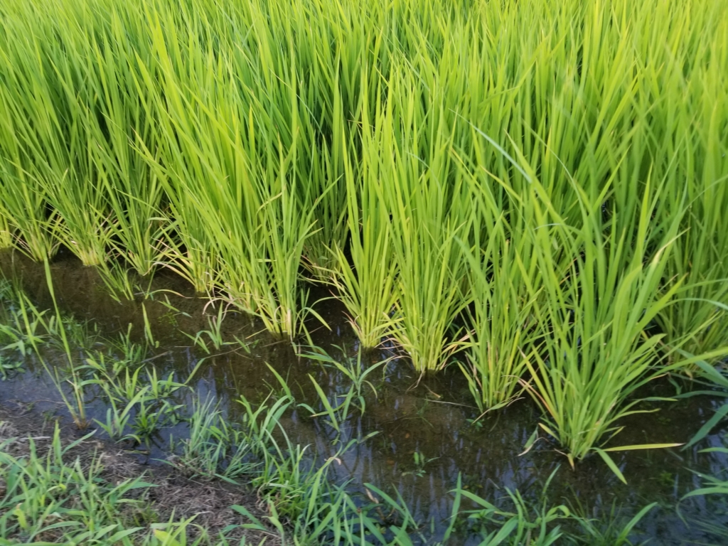 出穂直前なので土が乾かないように水を張って自然に水が減ったら水を足す飽水管理をしています。