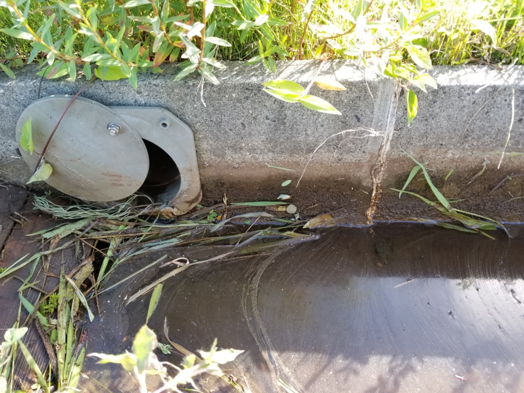 この塩ビのパイプを通って水が田んぼに入るのですが、水位が足りずにほとんど水が入ってくれません。