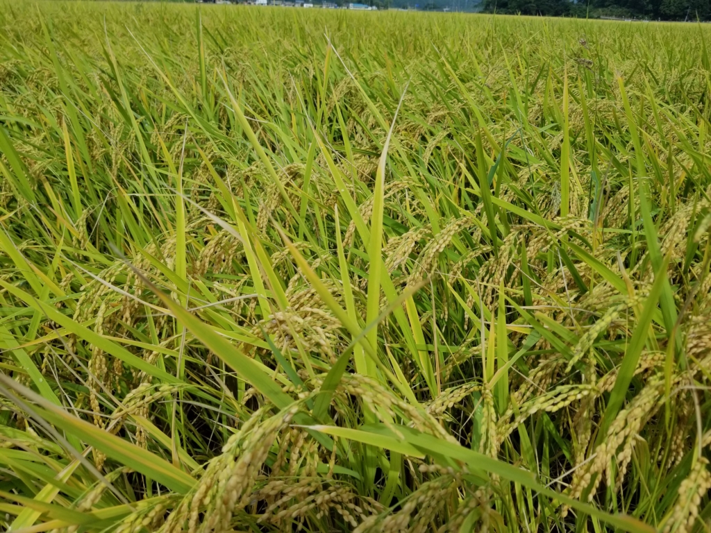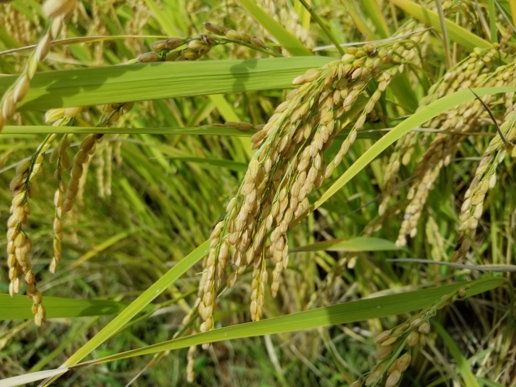 去年は休耕田だった田んぼでの初めての年だったので土の肥料分がありすぎてお盆明け位に倒伏してしまい日の光が十分に当たらずに未熟な米が多かったです。