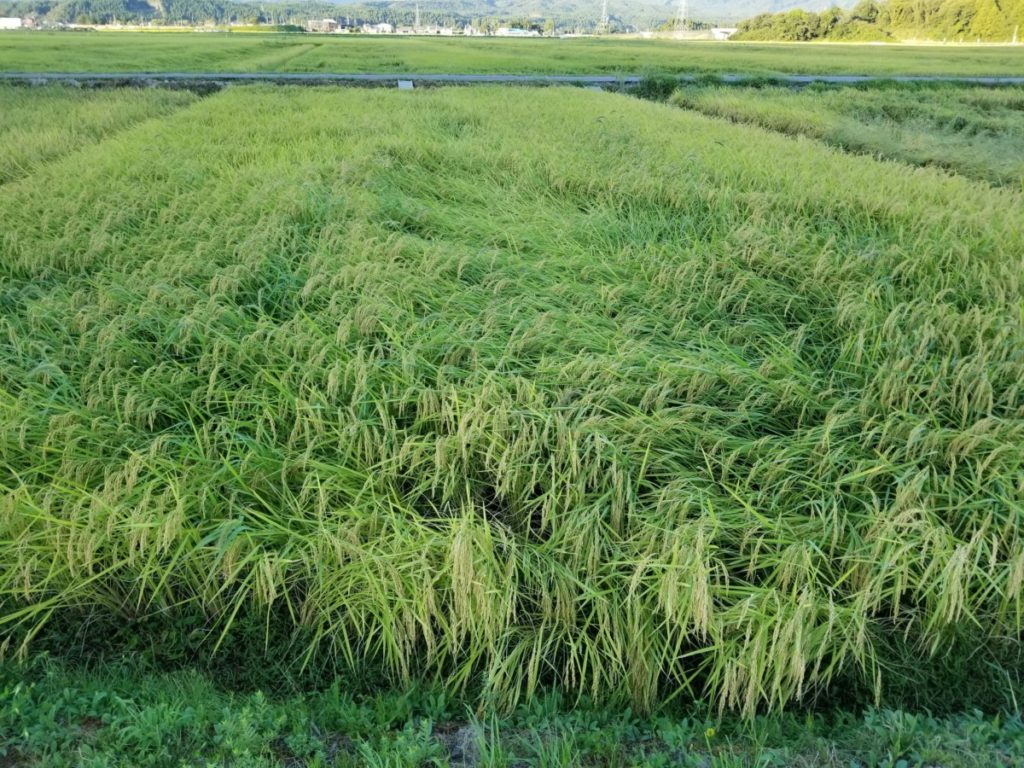 まだコシヒカリの収穫まではもう少し時間があるのですが、今後どのくらい倒伏が進むのかと思うと恐ろしいです。