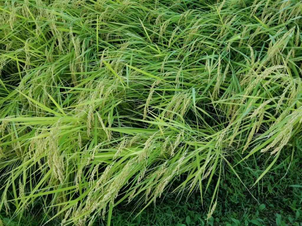 さらに慣行栽培だけでなく、肥料を入れていない無農薬栽培の田んぼまで倒伏し始めました。