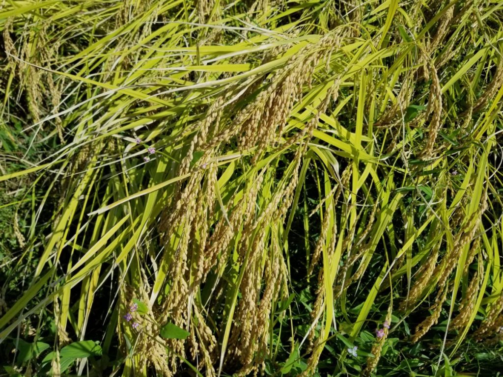 無農薬栽培の田んぼも昨年は1200℃くらいで稲刈りをしたので、今年もほぼ同じ時期の稲刈りになります。