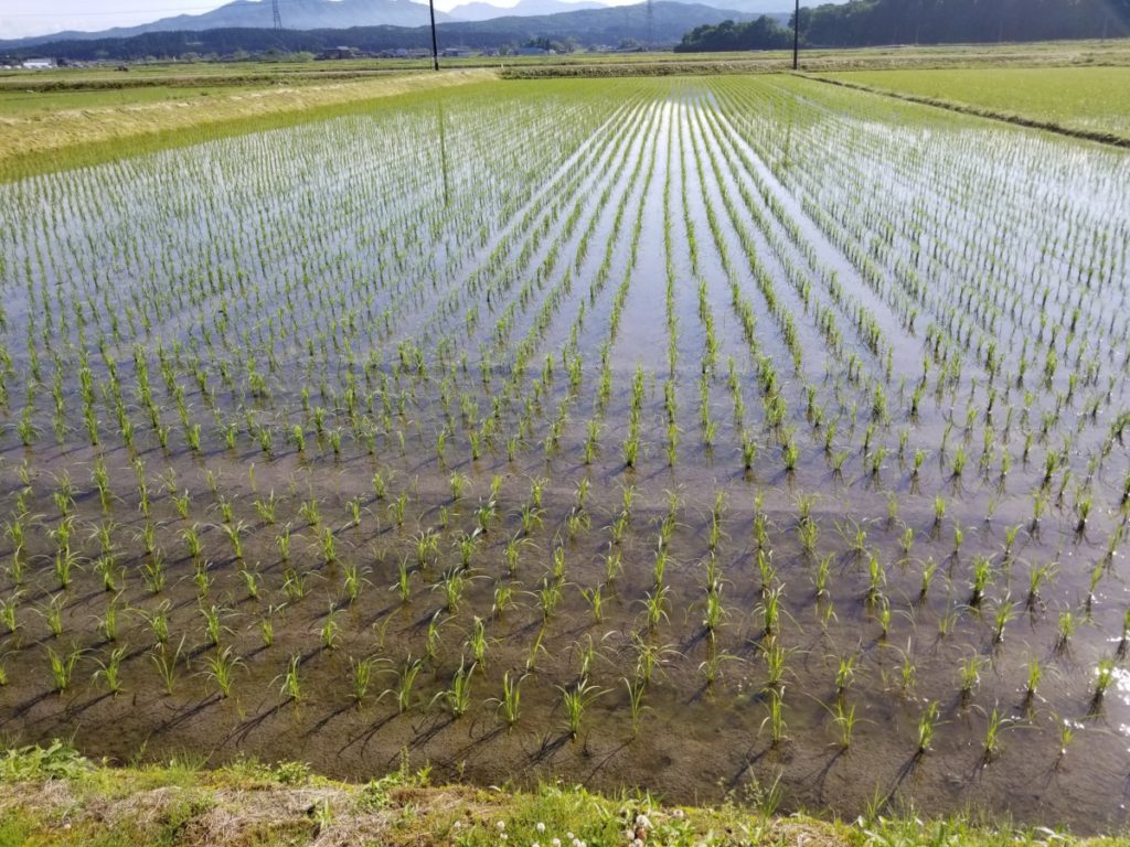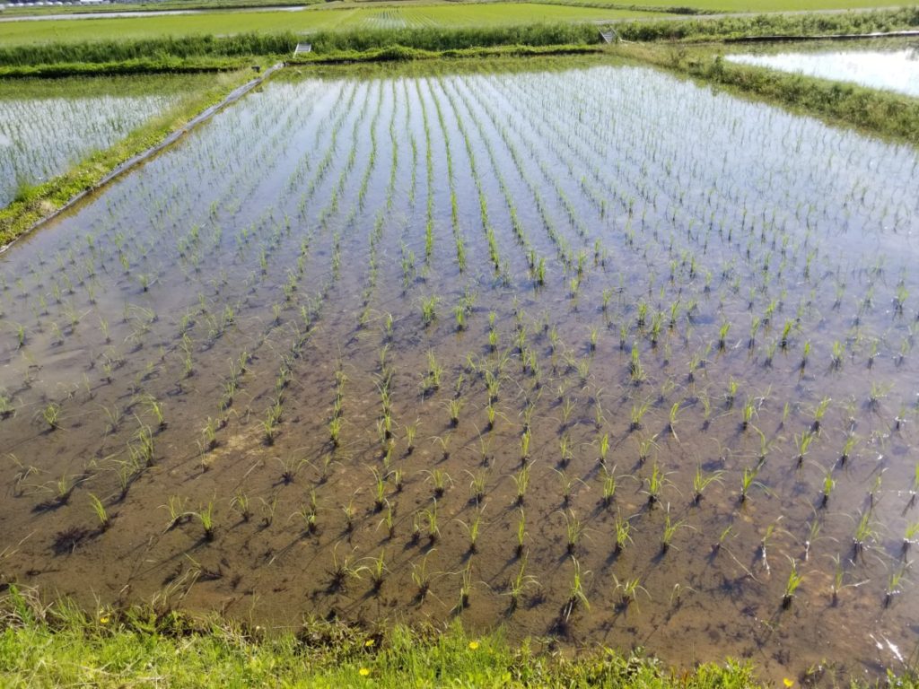 慣行栽培の田んぼは側条施肥が効き始めたのか今週に入って葉色が濃くなってきました。