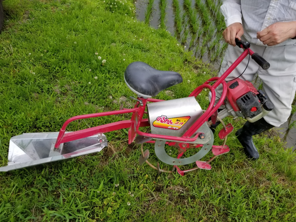 中干しはただ水をかけるのをやめて、水を落として田んぼを乾かすのですが、この作業を効率よくするために溝切りという作業を行います。