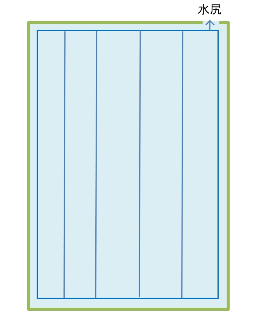 この図のように田んぼの周り及び一定間隔ごとに溝を掘ります。